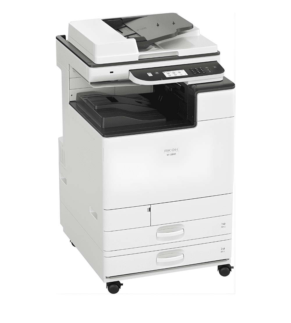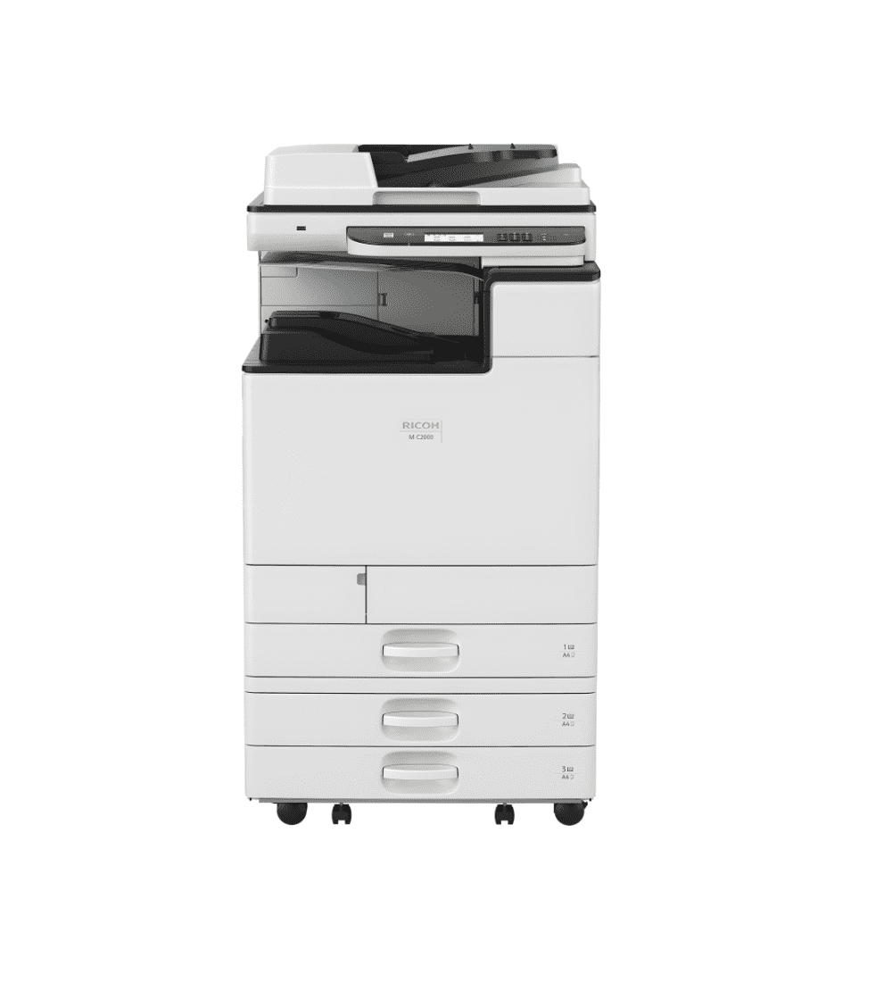 The Ricoh M C2000 is a robust A3 colour multifunction device that integrates printing, copying and scanning functionalities into one unit. It features a 4.3-inch (or larger, depending on region) touchscreen panel for intuitive operation and includes an Automatic Reverse Document Feeder (ARDF) as standard, which helps optimise scanning and duplication tasks.